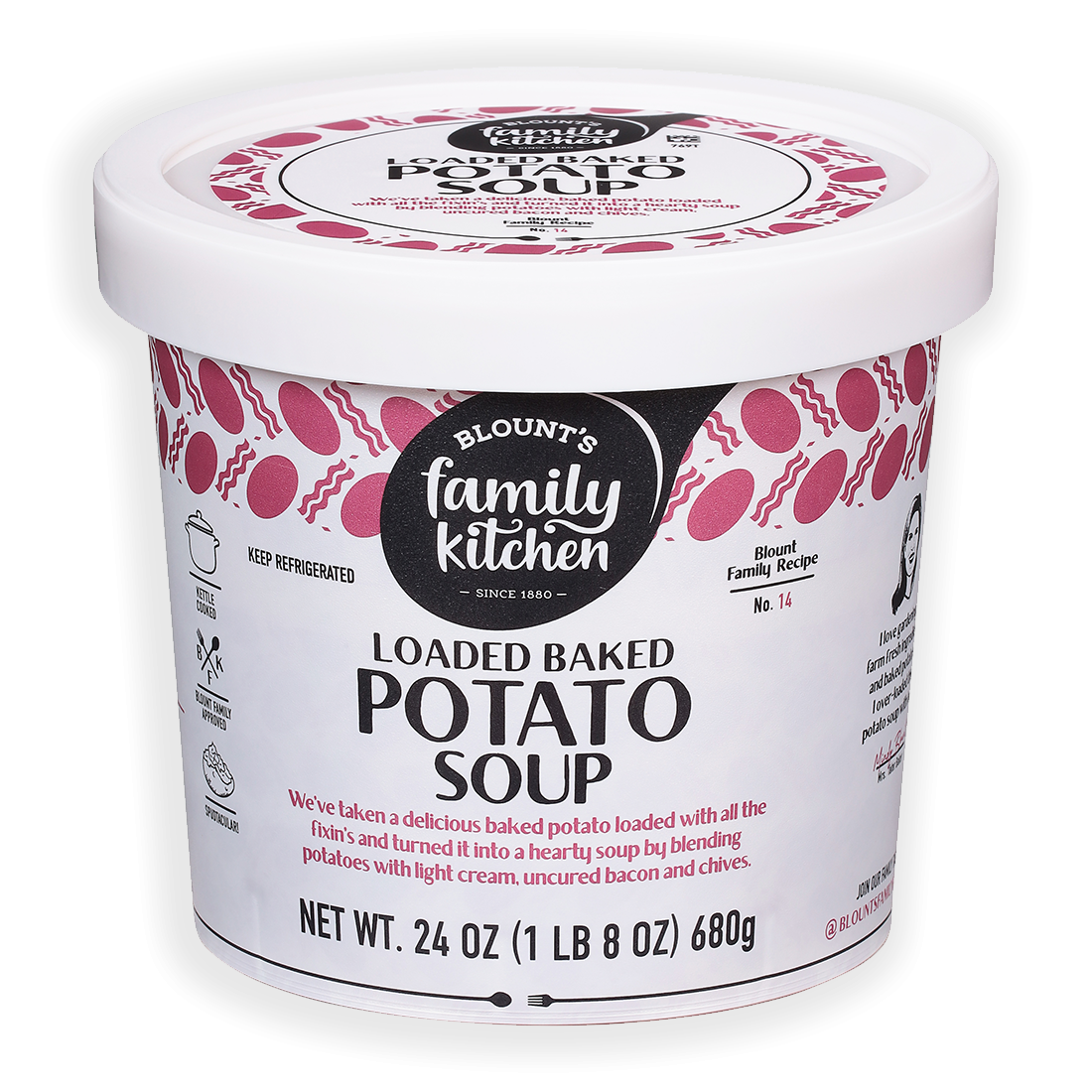 As a kid, the anticipation of receiving a card from Grandma Blount meant one thing - CASH! Just kidding, what we really looked forward to was her famous hidden initials. Grandma Blount always chose cards that were entirely too busy and had way too much going on. Why, you ask? Because it meant finding the initials she cleverly hid in the design would prove to be a challenge. Once we opened that envelope, the search for “RPB” (Ruth Palmer Blount) was on! Grandma Blount was the glue that held our family together. She loved to cook as much as she loved to eat, and she passed this love down to all of us. We often say this brand was “born from a love of food,” and she’s the matriarch behind it all. As homage to our grandma, we have hidden the initials “B, F & K” inside the pattern of every cup of soup!